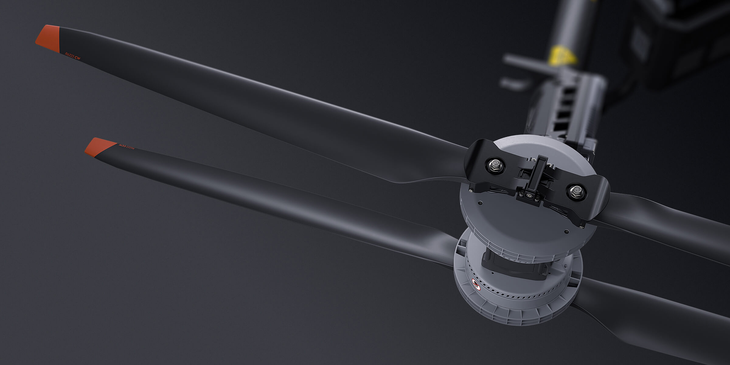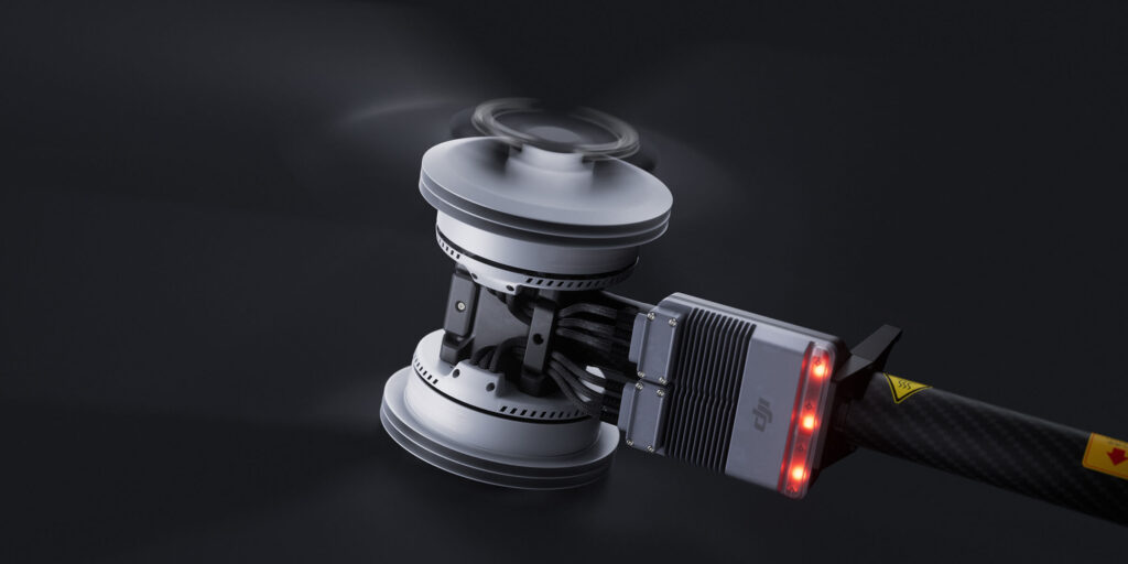 Carbon fiber propellers offer greater rigidity and lighter weight, can resist deformation even at high temperatures. With Optimized airfoil and enlarged propeller diameter, energy efficiency is improved. The upper motors are equipped with Propeller Clamps, which reduce propeller vibration for more stable flight